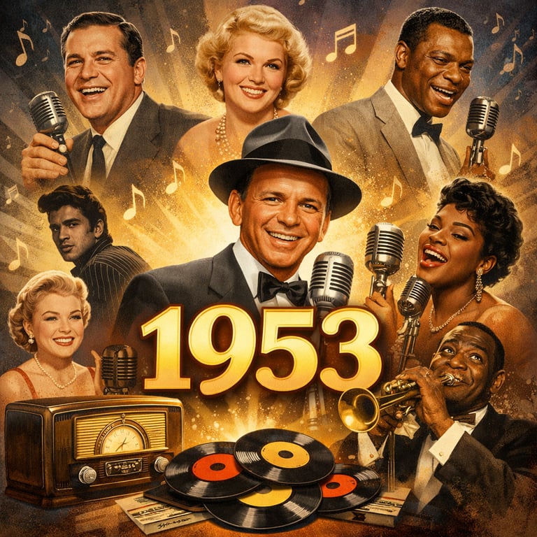 Il 1953 è un anno che unisce innovazione internazionale e consolidamento della musica italiana. Tra i successi di Frank Sinatra, Nat King Cole, Louis Armstrong, Tony Bennett e Hank Williams e la terza edizione del Festival di Sanremo, quest’anno dimostra come la musica si stia strutturando come fenomeno globale e nazionale.